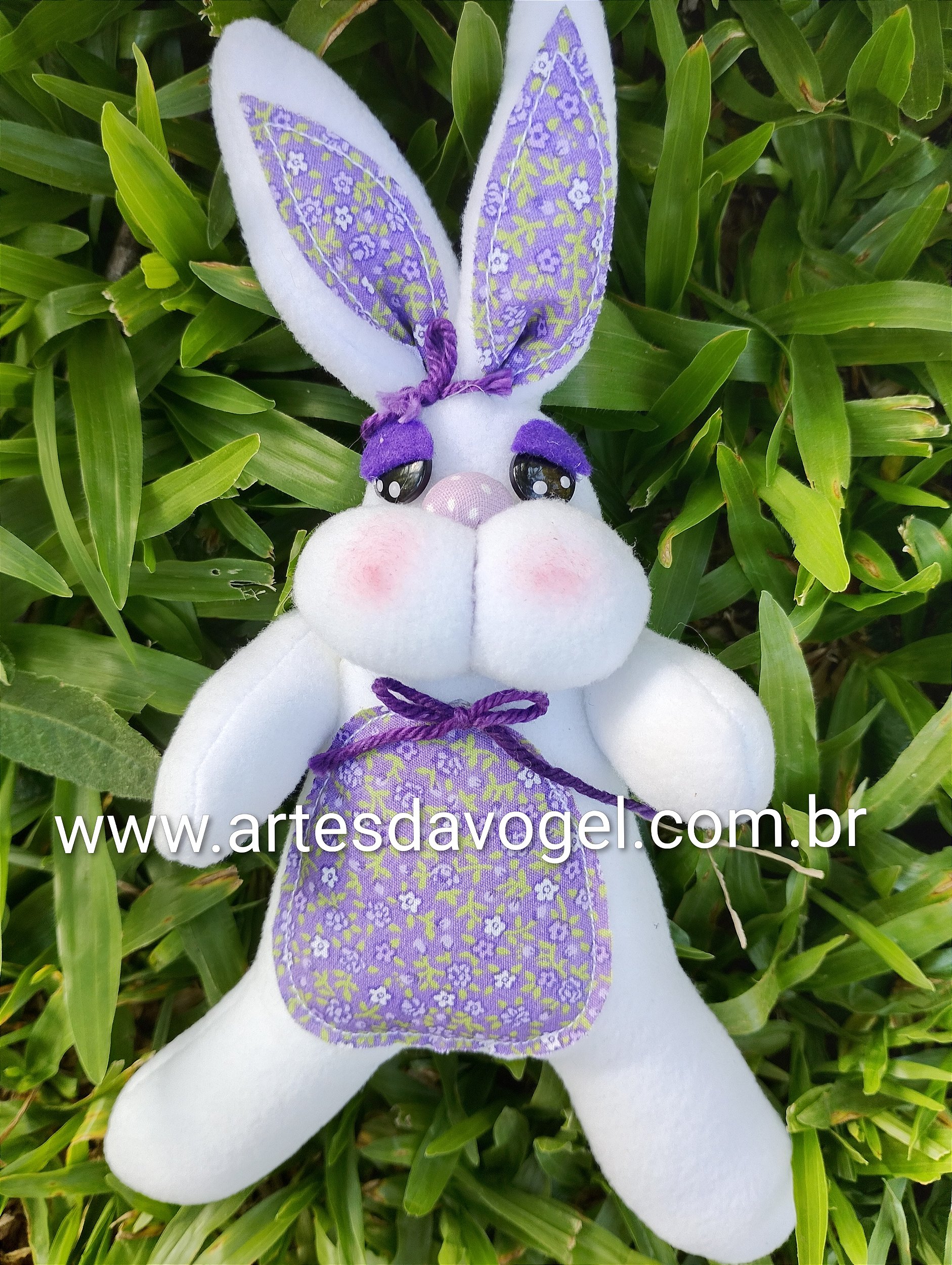 ***O CESTO É ILUSTRATIVO, apenas para demonstrar como ficam bonitos vários coelhinhos juntos no ninho. Aqui você está adquirindo apenas UMA coelha Ana Júlia, em tons roxinho.
