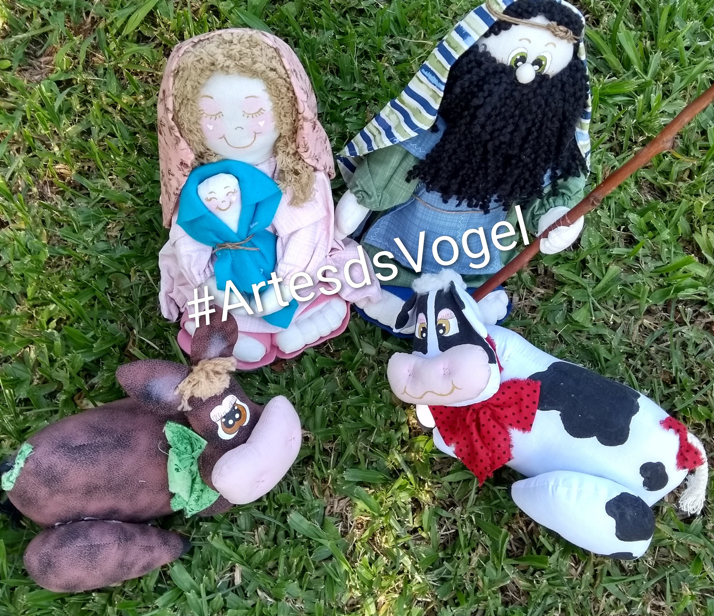 Artesanato feito com amor e dedicação. Presépio médio, ideal para qualquer ambiente, pode ser colocado em algum móvel ou no chão próximo a árvore de Natal. A sagrada família, José com seu cajado, Maria segurando o bebê Jesus, cercados por um burrico e por uma simpática vaquinha, compõem este presépio. Confeccionados em tecido de algodão em diversas estampas. José , Maria, o burrico e a vaquinha têm peso em suas bases para mantê-los estruturados em pé. A família em cores vivas e harmônicas , tudo pensado com cuidado e dedicação para encantar e surpreender. Ideal para quem gosta de peças diferenciadas que fogem ao comum.